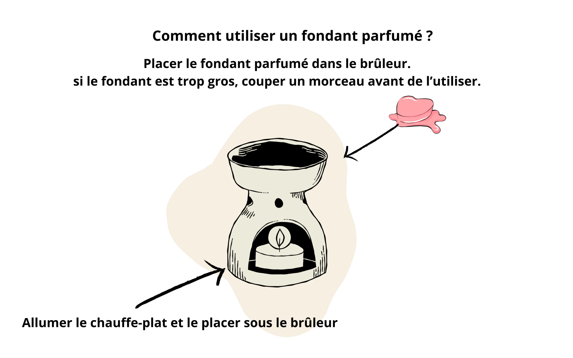 - Fondant, divers parfums, fabriqués à base de cire de soja et de parfum de Grasse pour certains fondants, colorés. Avec du colorant en grain à base d'aniline.