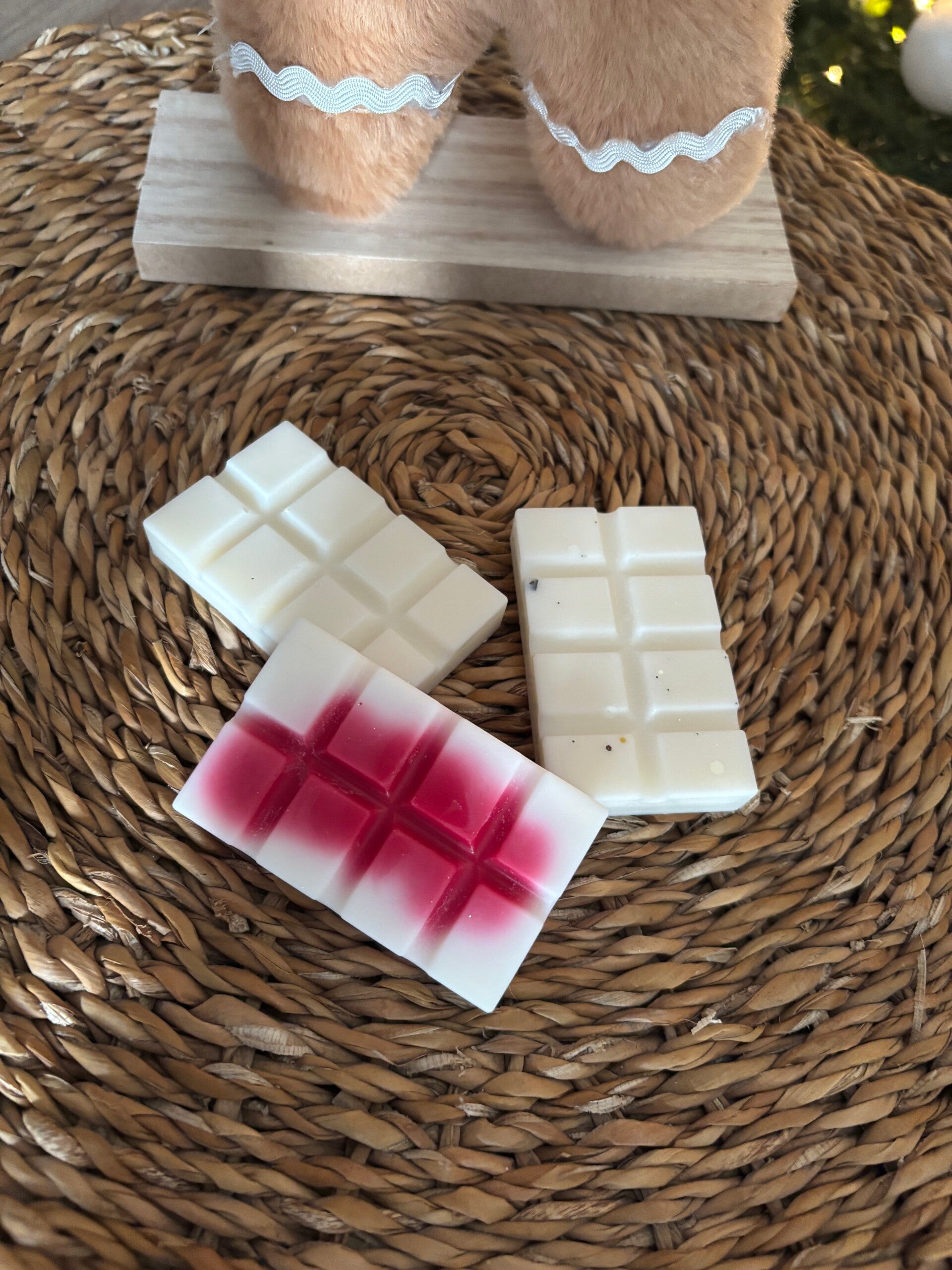 - Fondant fabriqués à base de cire de soja et de parfum de Grasse pour certains fondants, colorés avec du colorant en grain à base d'aniline. Ne contient pas de substance CMR / sans cruauté animale.