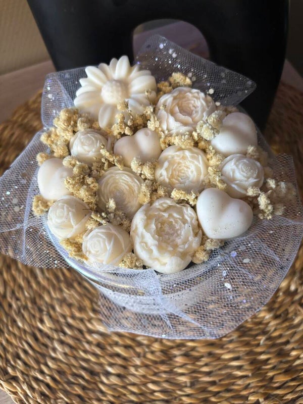 - Bouquet composé de 13 fondants parfumés fabriqués à base de cire de soja et de parfum de Grasse.