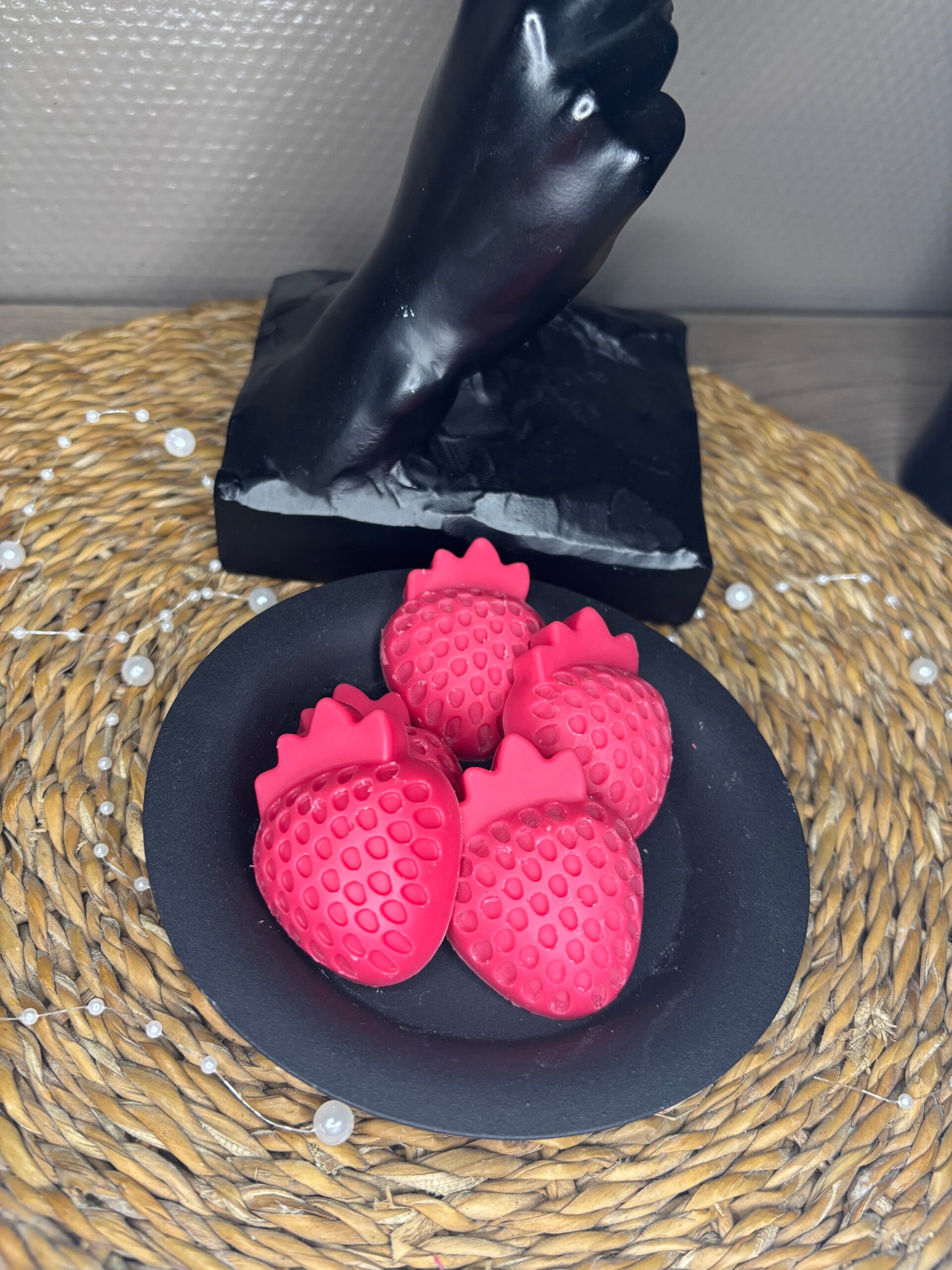 - Découvrez Fraise, un parfum qui évoque la douceur et la gourmandise des fraises juteuses, avec une composition riche en notes alimentaires, de fruits rouges, et fruitées. Ce parfum est idéal pour ceux qui cherchent à créer une ambiance délicieusement fruitée et réconfortante dans leur espace.