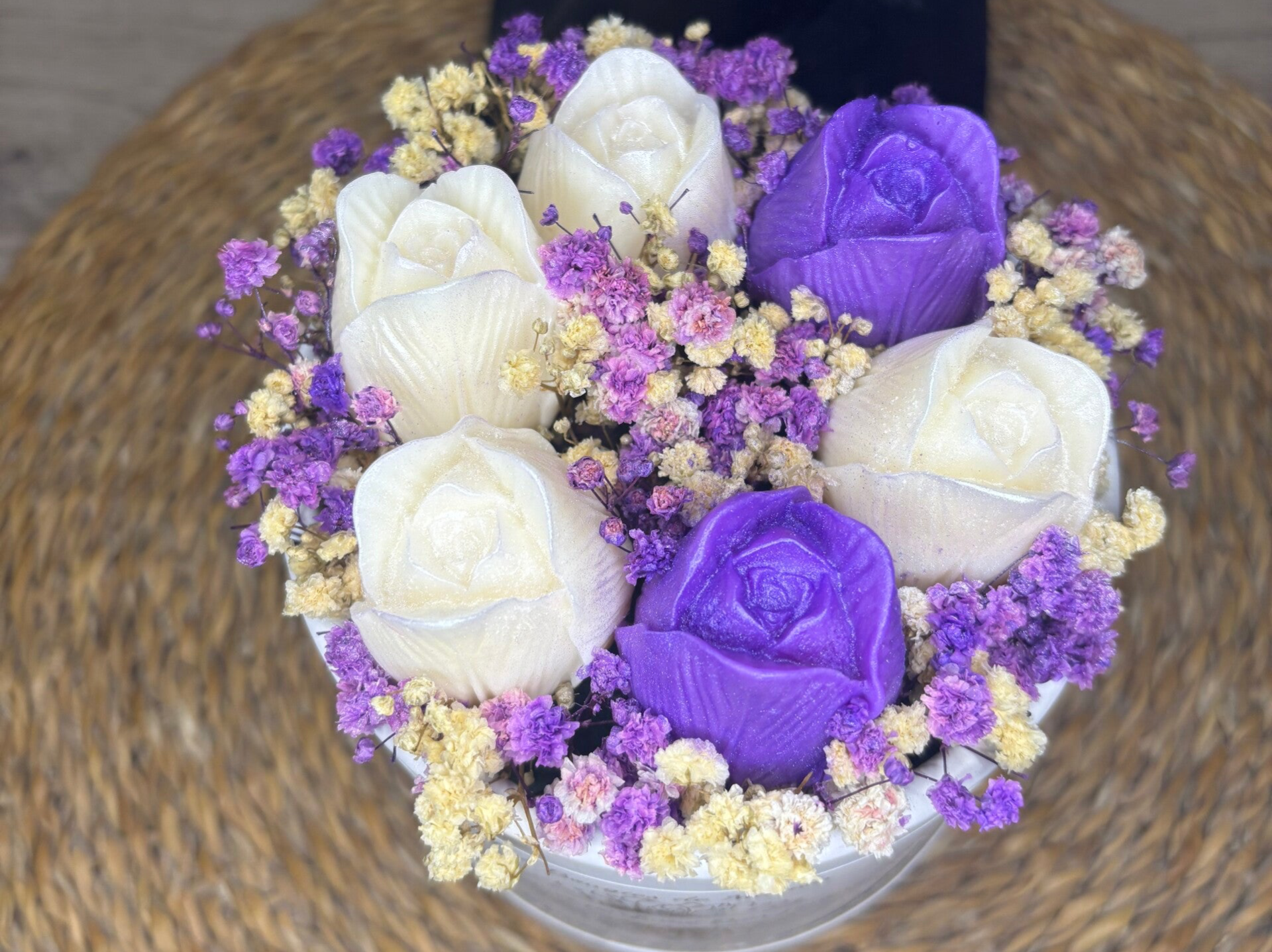 • Bouquet composé de 6 fondants parfumés fabriqués à base de cire de soja et de parfum de Grasse.